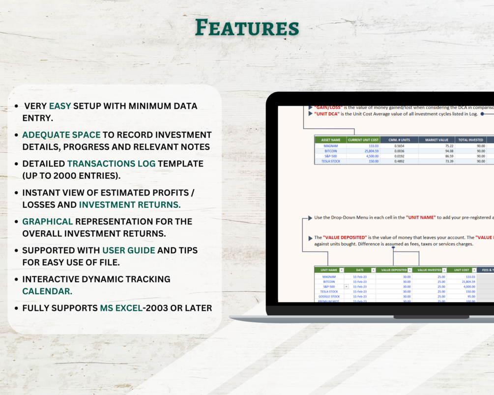 - Fully supports MS Excel-2003 or later (No macros or coding imbedded). Basic Computer knowledge only required.